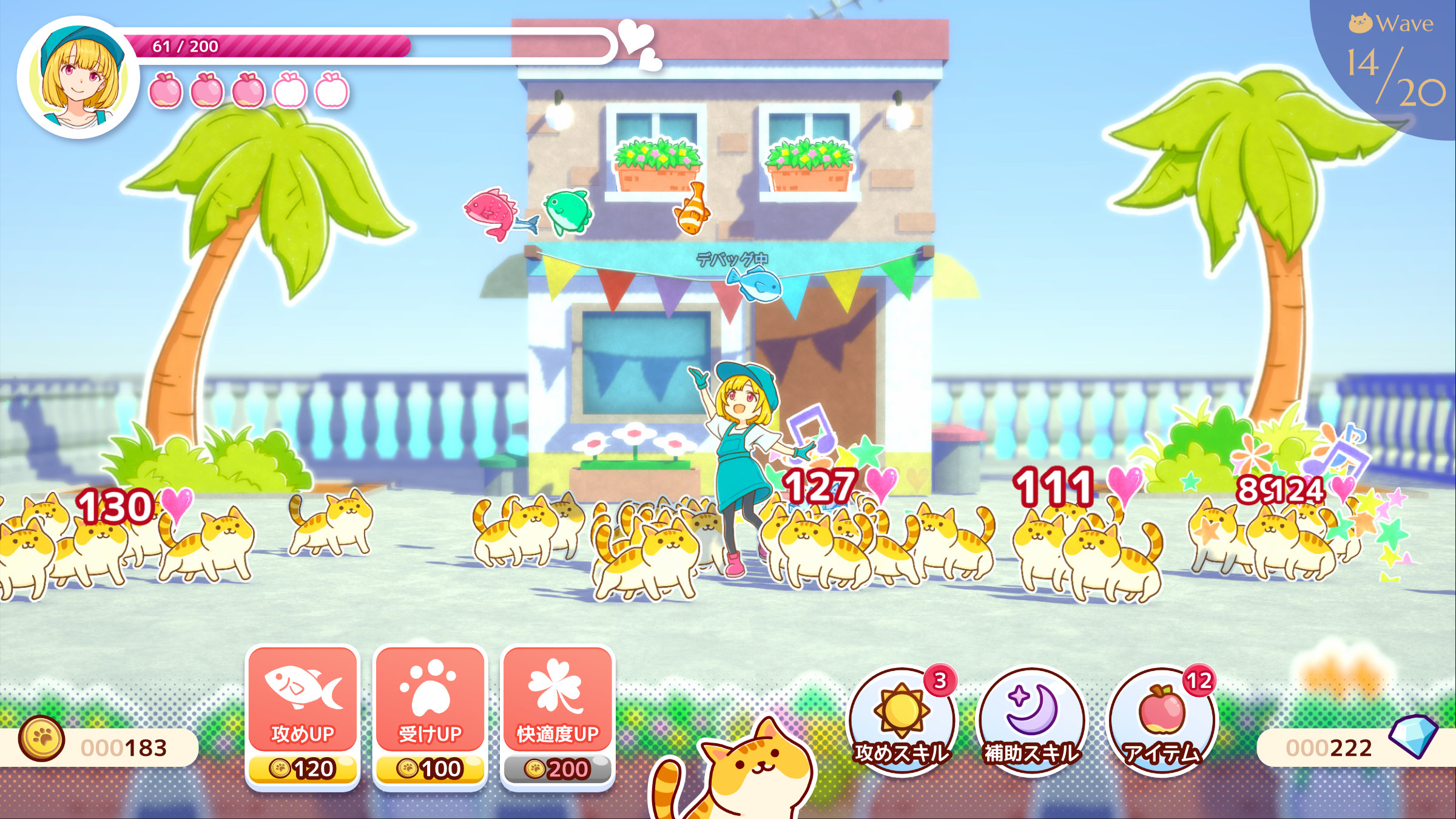 「迫り来るのが敵ではなくて、かわいい猫の大群だったら?」 というのが着想